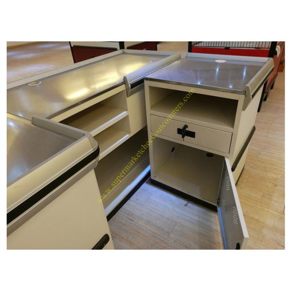 Retail White Supermarket Checkout Counter / Commercial Shop Counter Desk Images |